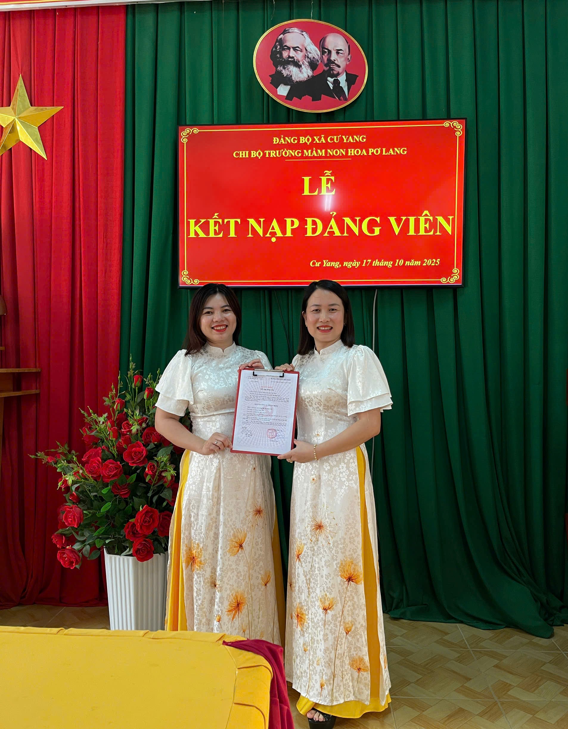 – Hôm nay, ngày 20 tháng 10 năm 2025, Chi bộ Trường MN Hoa Pơ Lang long trọng tổ chức Lễ kết nạp đảng viên cho quần chúng theo quyết định của Ban thường vụ Đảng ủy xã Cư Yang.