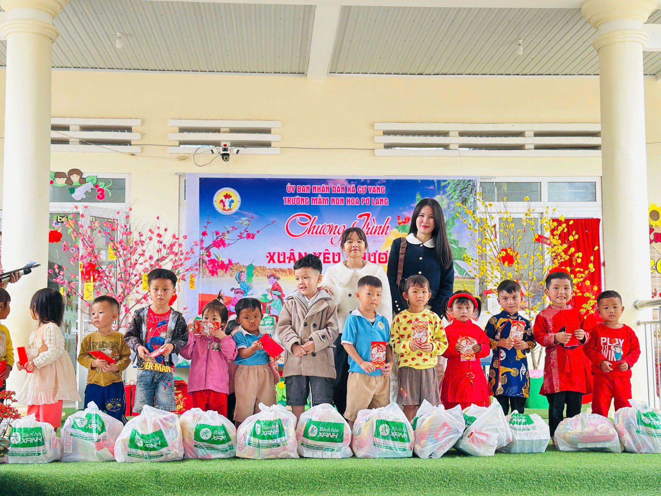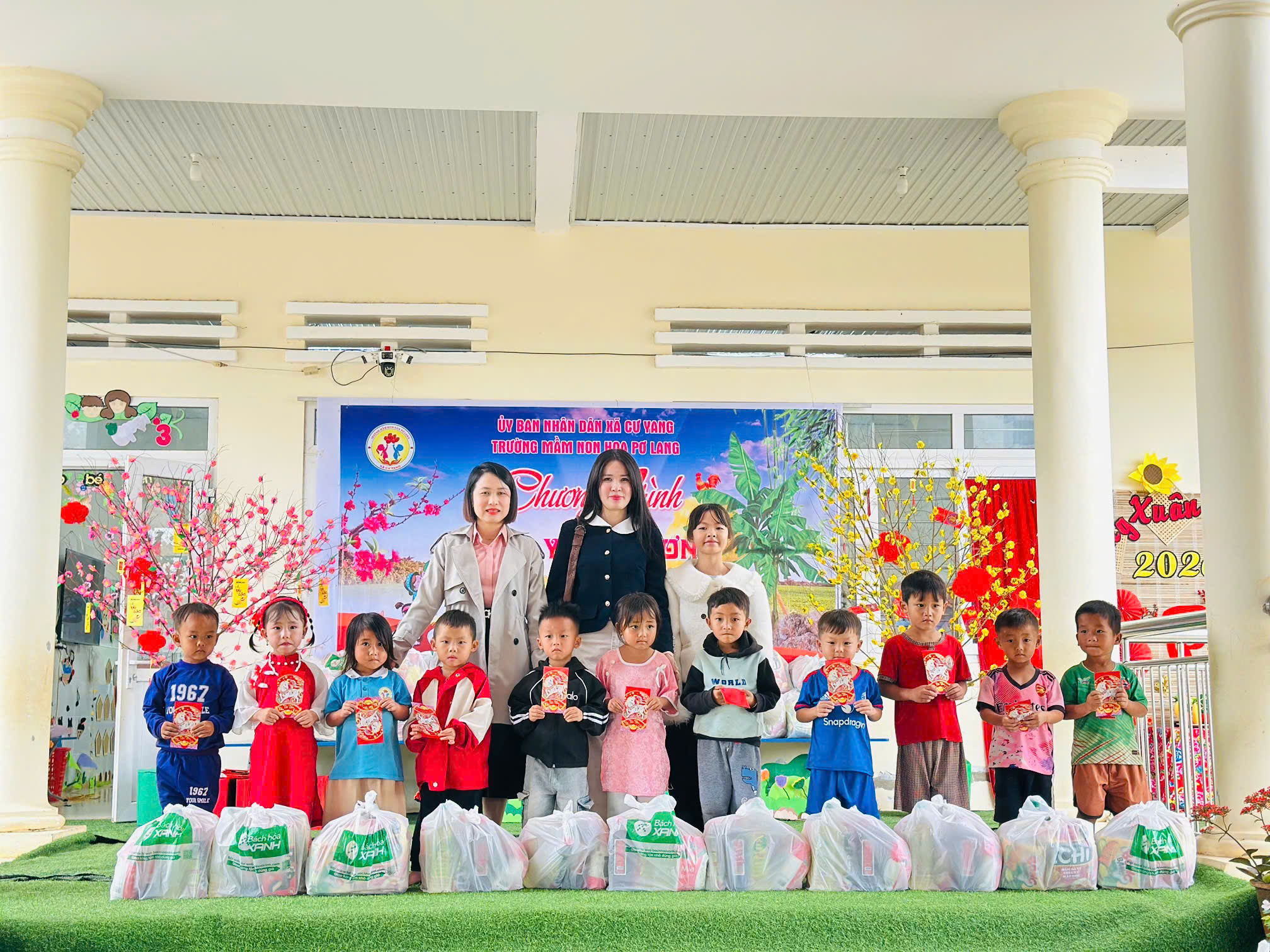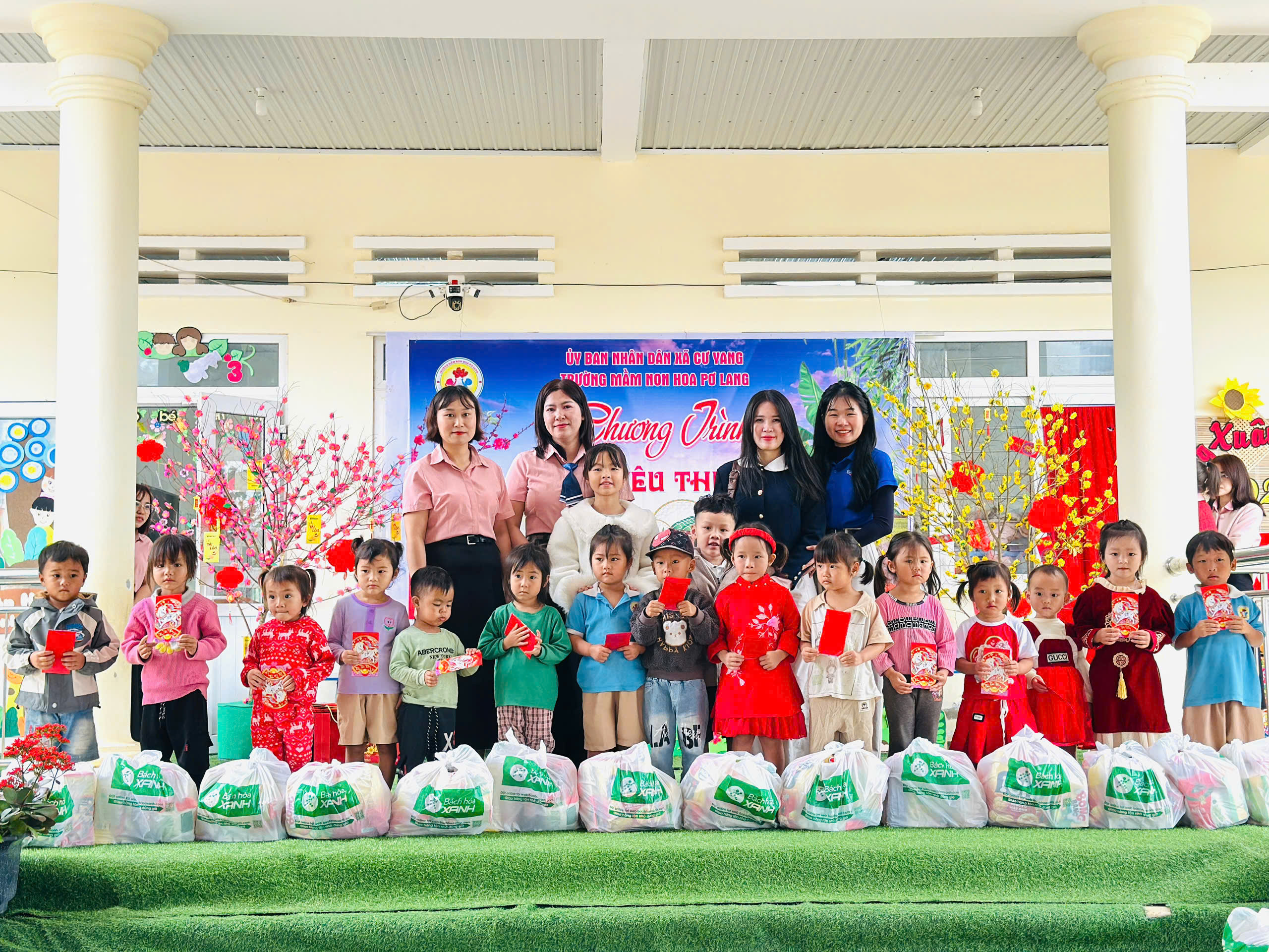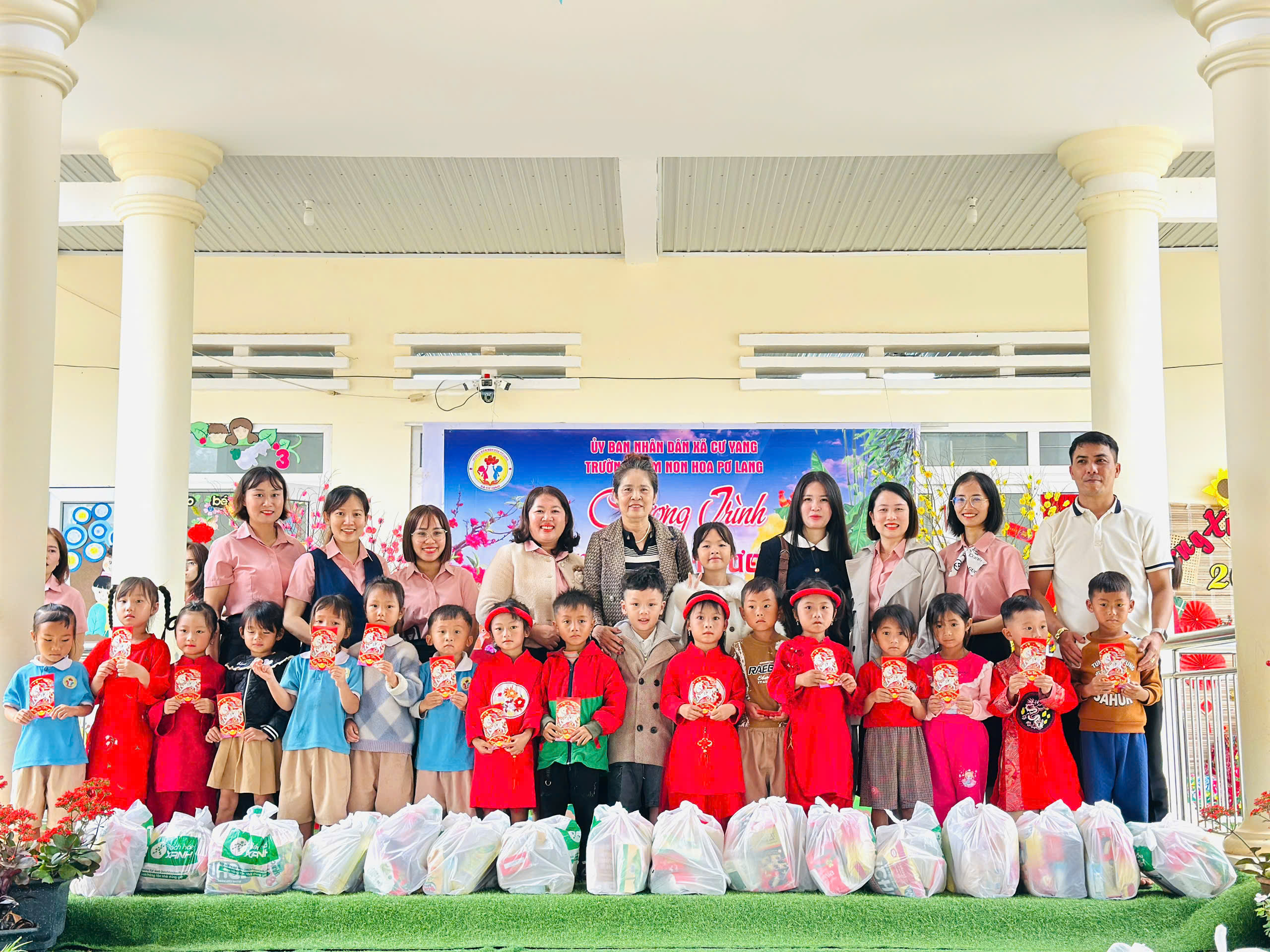 Trong không khí ấm áp của những ngày đầu xuân, Trường Mầm non Hoa Pơ Lang vinh dự được kết nối và tổ chức Chương trình “Xuân yêu thương” tại Điểm trường Tái định cư – nơi còn nhiều khó khăn về điều kiện kinh tế và đời sống của người dân.