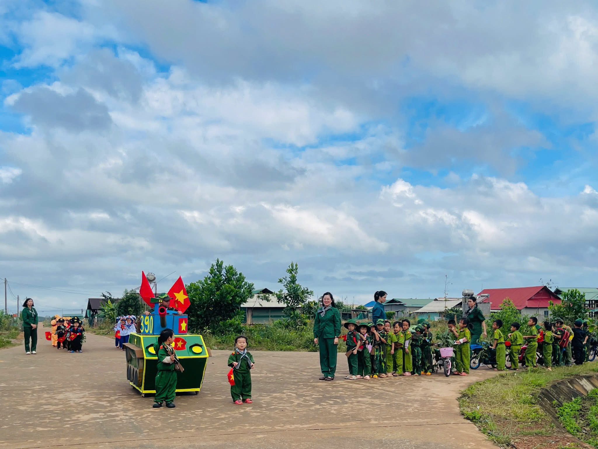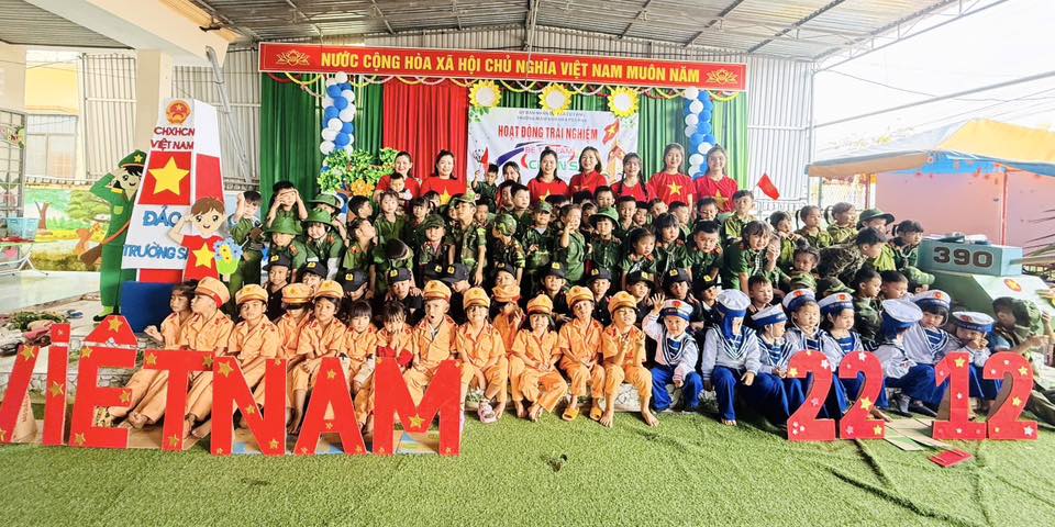 Thông qua các hoạt động như tìm hiểu hình ảnh chú bộ đội, tham gia trò chơi vận động, nghe kể chuyện truyền thống và giao lưu trải nghiệm trên thao trường được minh họa, các bé được làm quen với hình ảnh người lính Bộ đội Cụ Hồ – những người anh hùng luôn bảo vệ Tổ quốc. Hoạt động không chỉ mang đến cho trẻ niềm vui, sự hứng thú mà còn góp phần bồi dưỡng tình yêu quê hương, lòng biết ơn và niềm tự hào dân tộc ngay từ những năm đầu đời.