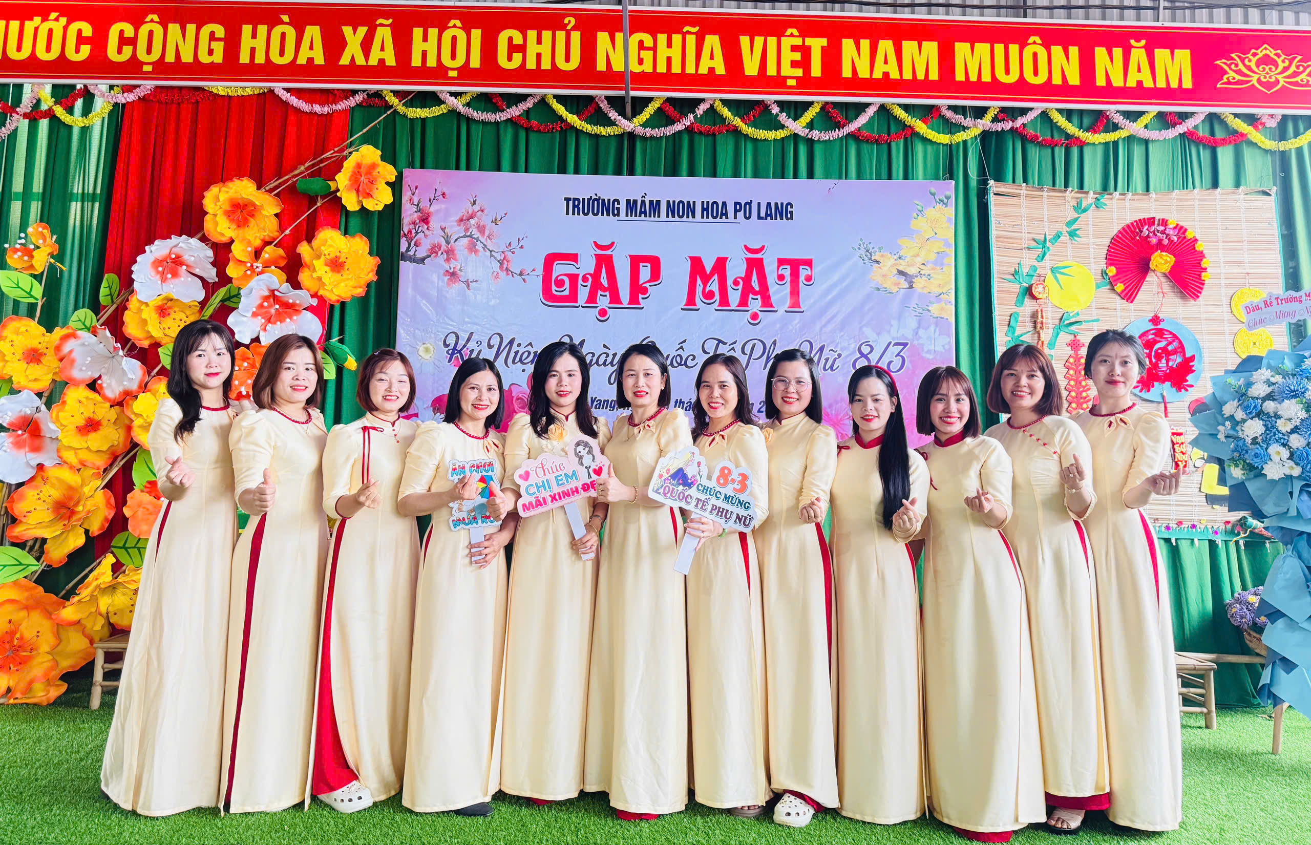 Trong không khí rộn ràng của những ngày tháng Ba – tháng tôn vinh phái đẹp, trường Mầm non Hoa Pơ Lang đã cùng nhau tổ chức chương trình giao lưu chào mừng Ngày Quốc tế Phụ nữ 8/3 trong bầu không khí ấm áp, vui tươi và tràn đầy tiếng cười.